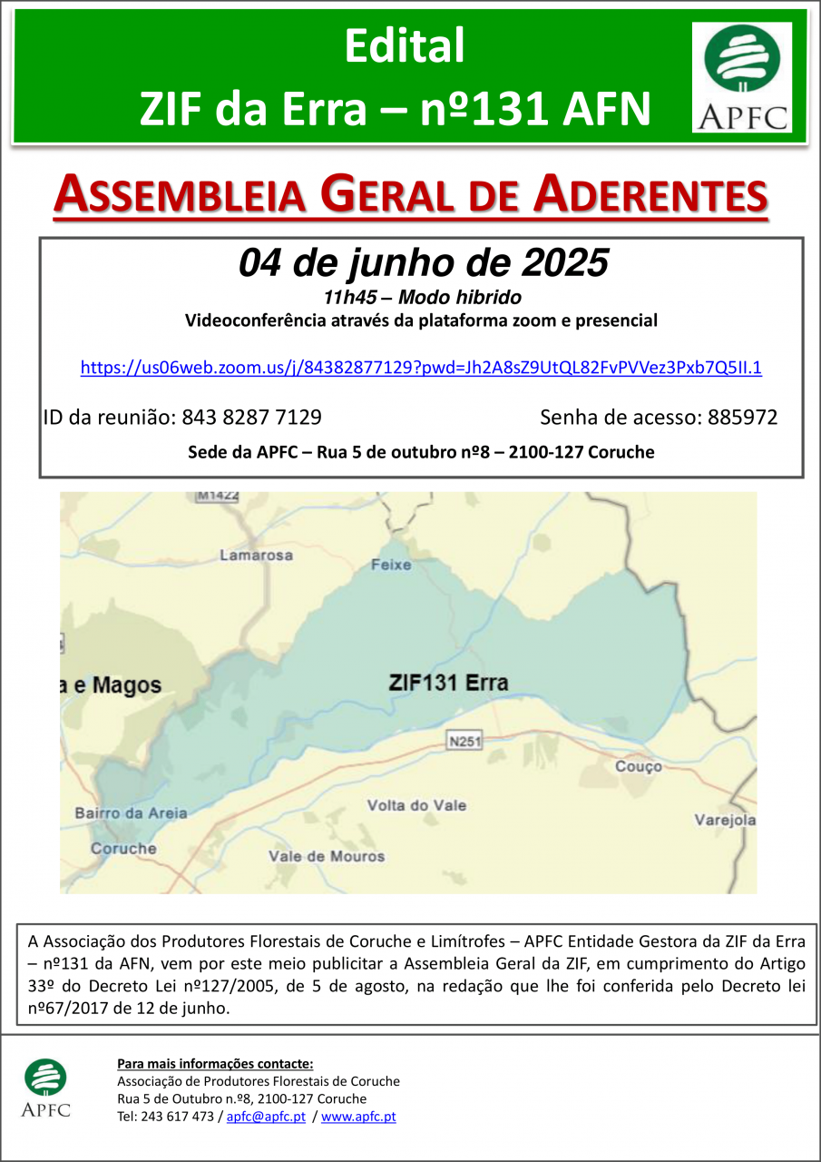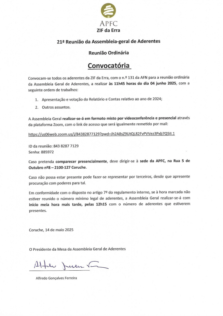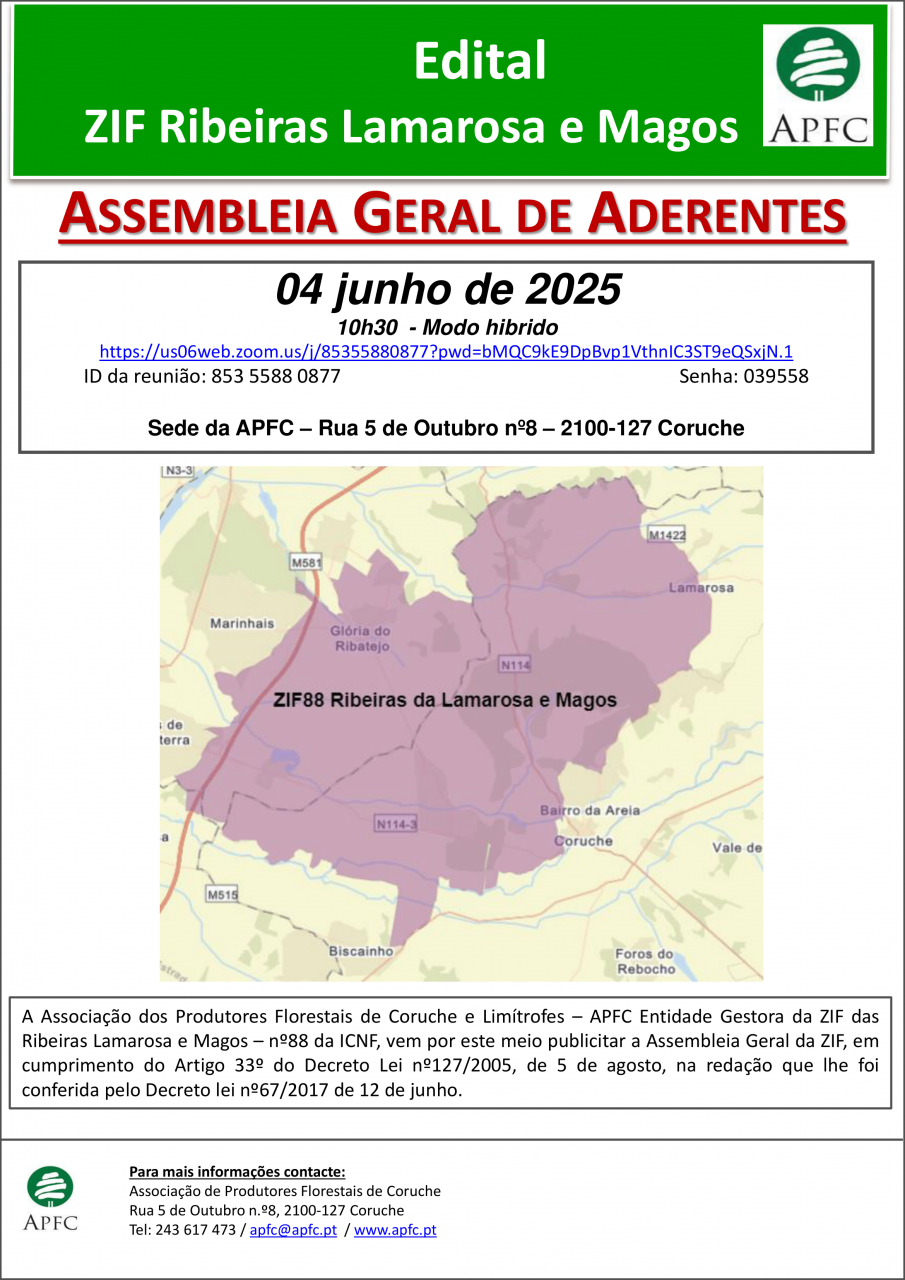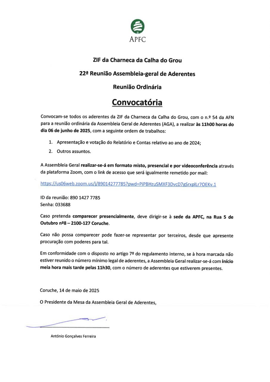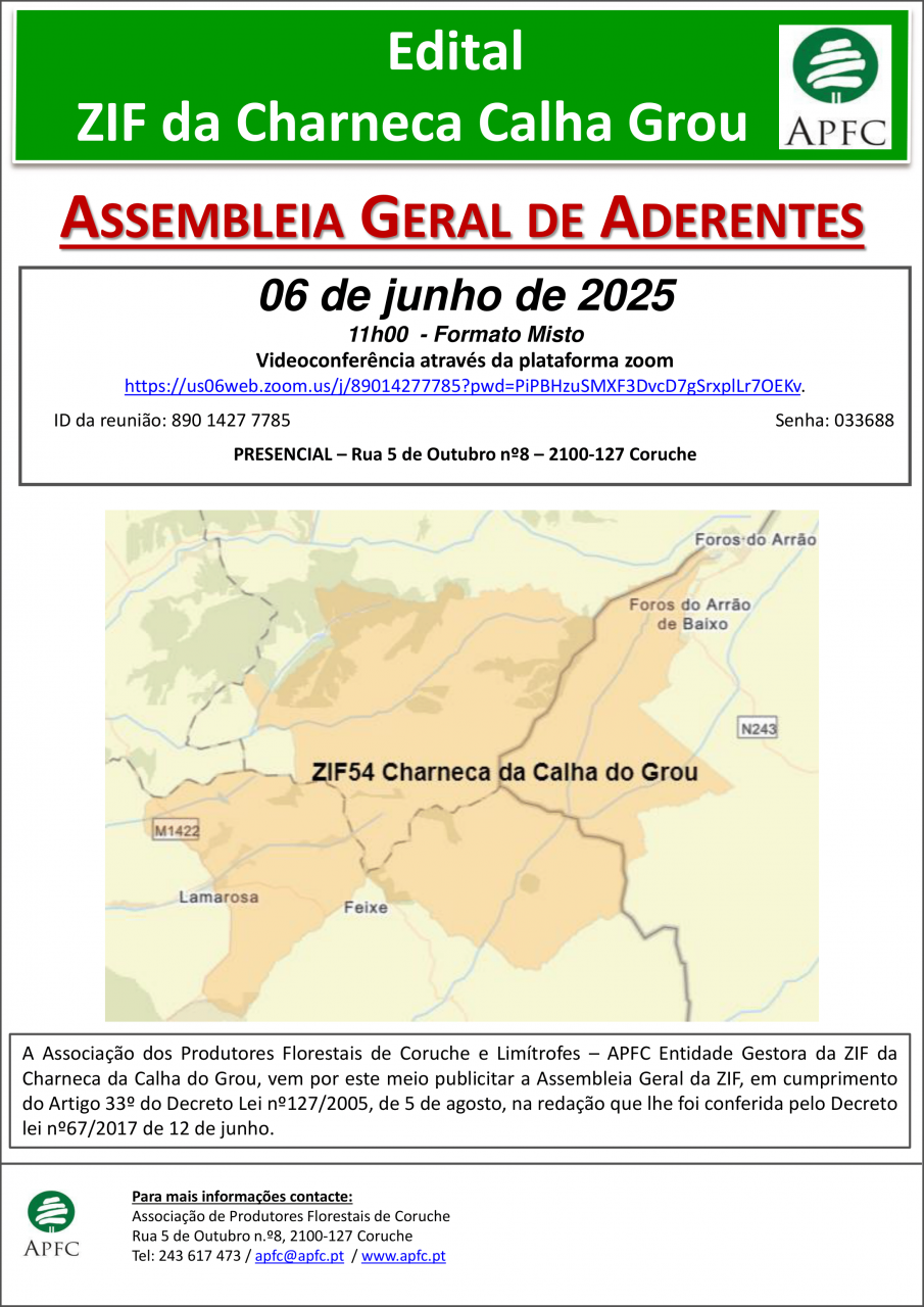 Assembleia Geral da ZIF da Charneca da Calha do Grou. ZIF das Ribeiras da Lamarosa e Magos e ZIF da Erra